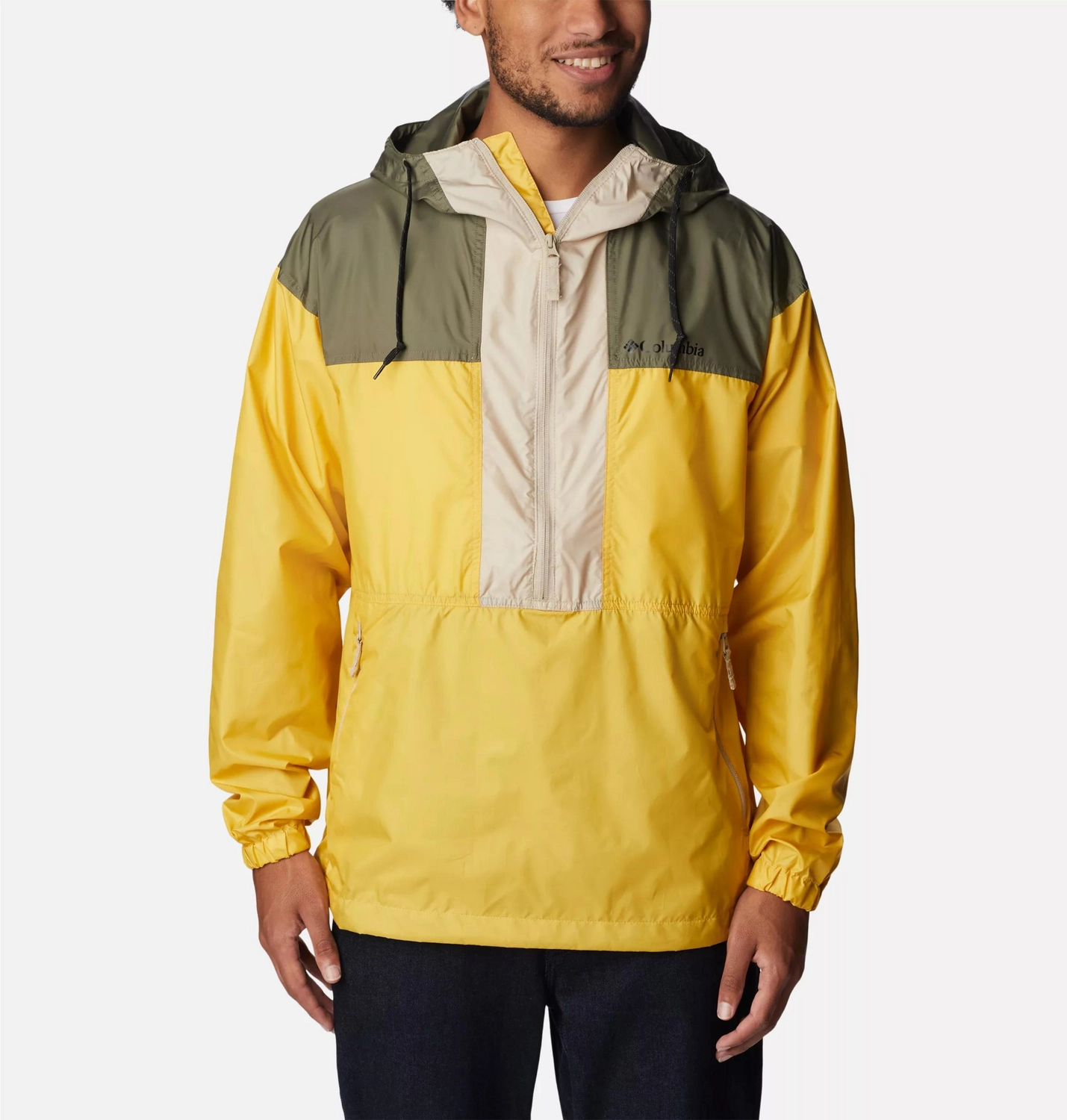 De Columbia Flash Challenger is een hoogwaardige jas voor heren. Het anorak model, gemaakt van 100% polyester, heeft een regular fit en een lengte van 74 cm aan de middenrug. De jas is uitgerust met een verstelbaar middel met trekkoord, een capuchon die aan te trekken is met een koord, een halve rits aan de voorkant en elastische uiteinden van de mouwen. De jas is waterafstotend en heeft een opvallende kleur: Golden Nugget. Deze jas is perfect geschikt voor heren die op zoek zijn naar een stijlvolle en functionele jas voor diverse outdoor activiteiten.